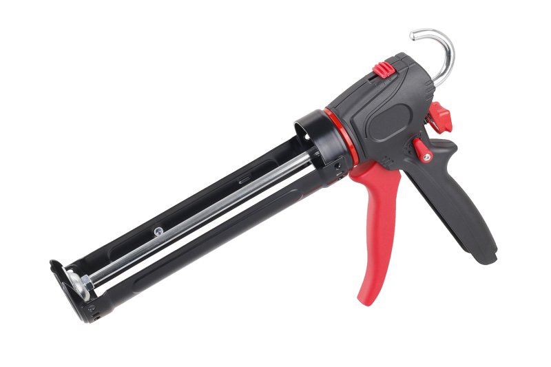 vytlačovací pistole na kartuše 310 ml masivní posuvný mechanismus pro husté a tuhé tmely, lepidla nebo chemické kotvy možnost nastavení dvou úrovní zpětného odskoku nebo jeho úplné vypnutí nastavení převodu síly a tím i množství vytlačeného tmelu 9:1 nebo 18:1 na jedno zmáčknutí
