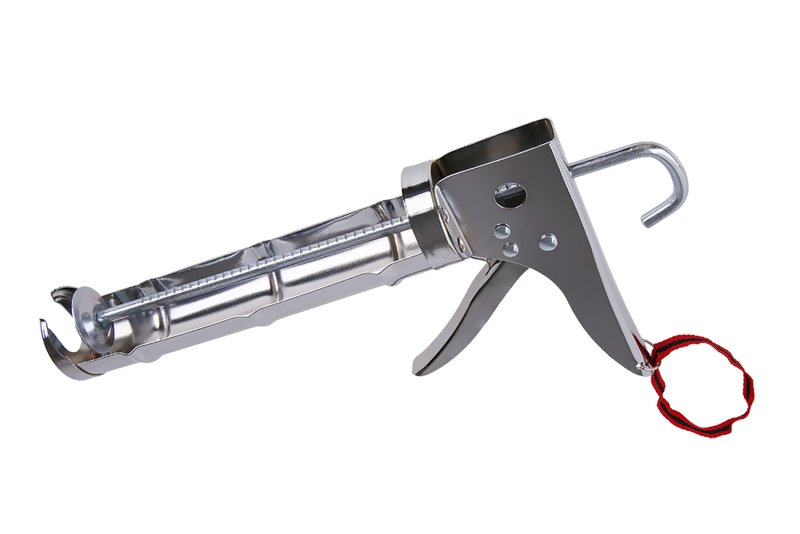 Vytlačovací pistole, plechová konstrukce - chromovaná, zoubkované táhlo pro lepší posun při vytlačování, použití : pro vytláčení tmelů a lepidel v kartuších 310 ml.