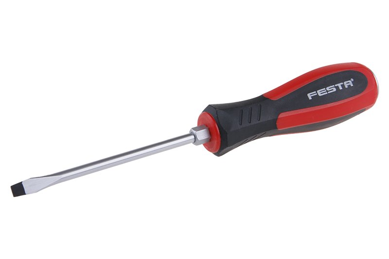 Kovový dřík šroubováku FESTA je vyroben z kvalitní chromvanadiové oceli, kalený hrot je magnetický, u rukojeti je šestihran pro použití klíče, kombinace polypropylenu a pryže na rukojeti a její ergonomický tvar zaručuje dobré antiskluzové vlastnosti a dobrou odolnost vůči mazadlům a chemikáliím.