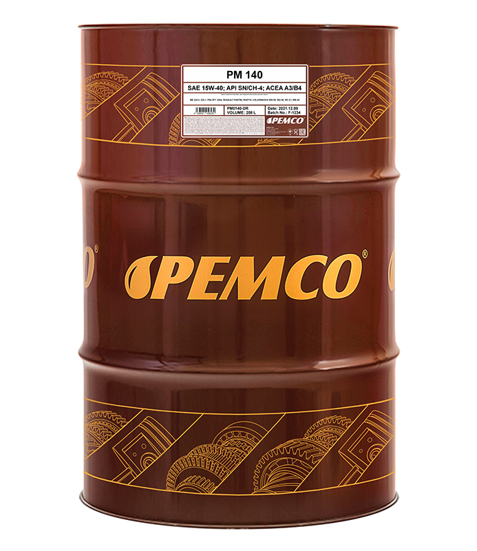 PEMCO 140 je motorový olej pro benzínové i naftové motory s i bez turbodmychadla. Vysoký viskozitní index a vynikající kompatibilita s těsnicími materiály snižují pravděpodobnost úniku oleje a zajišťují potřebný tlak oleje i u motorů s vysokým kilometrovým nájezdem. Obsahuje organický molybden, který přispívá k jedinečným vlastnostem proti tření a oděru. Důkladně vyvážený balíček aditiv zajišťuje efektivní funkci motoru ve všech režimech provozu: studený start, zvýšené zatížení a při vysokých teplotách okolí.