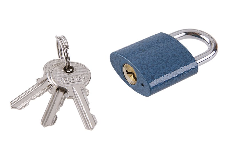 Ocelové tělo zámku, Mosazná vložka, 3 klíče, Zesílený oblouk z tvrzené oceli pro lepší odolnost proti prořezání.
