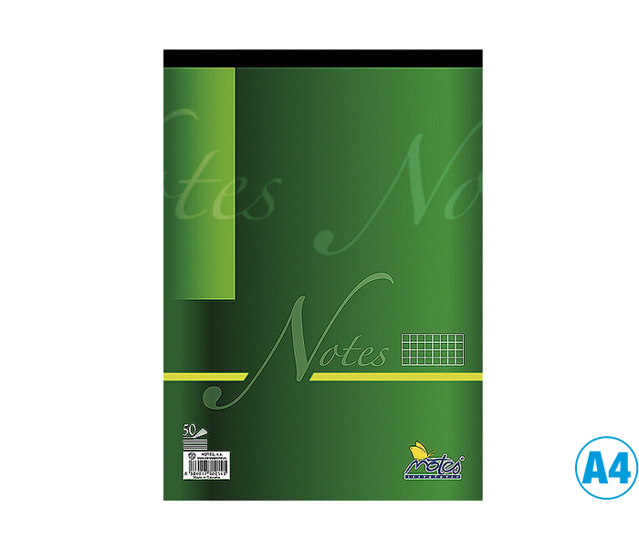 - poznámkový trhací blok- z bezdřevého papíru- šitý na kratší straně- podlepený šedou lepenkou- formát: A4- počet listů: 50- vzor: čtverečkovaný- gramáž: 60g/m²