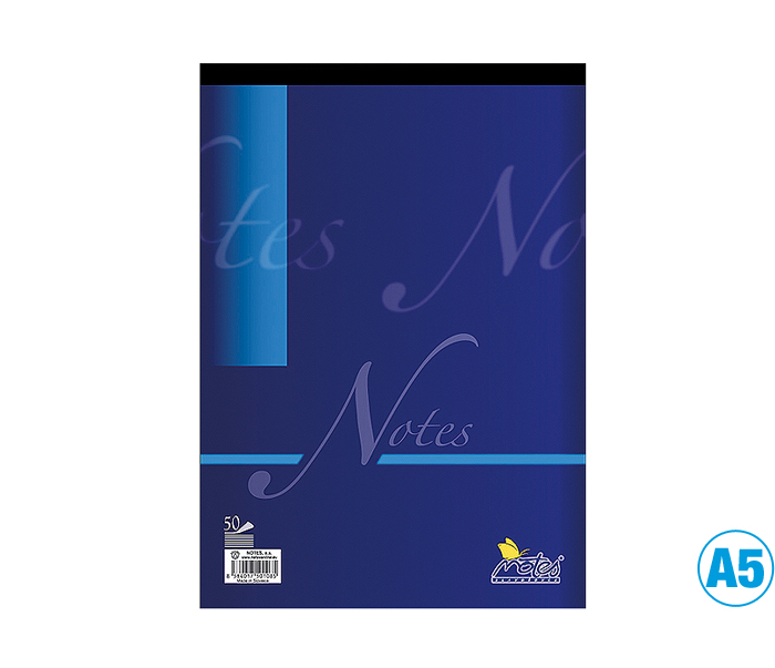 - poznámkový trhací blok- z bezdřevého papíru- šitý na kratší straně- podlepený šedou lepenkou- formát: A5- počet listů: 50- vzor: čistý- gramáž: 60g/m²