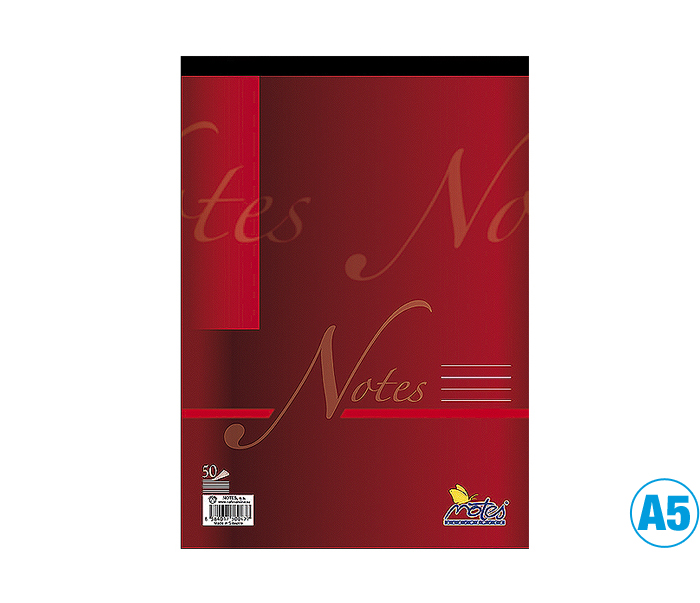 - poznámkový trhací blok- z bezdřevého papíru- šitý na kratší straně- podlepený šedou lepenkou- formát: A5- počet listů: 50- vzor: linkovaný 8mm- gramáž: 60g/m²