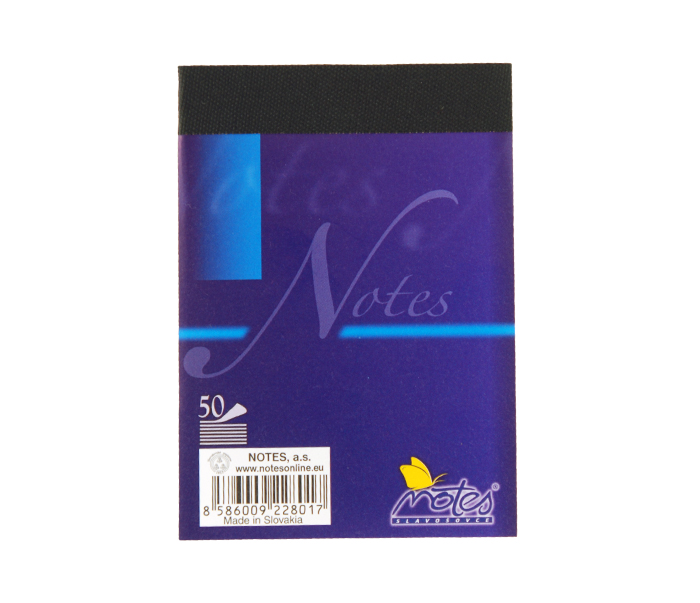 - poznámkový trhací blok- z bezdřevého papíru- šitý na kratší straně- podlepený šedou lepenkou- formát: A7- počet listů: 50- vzor: čistý- gramáž: 60g/m²