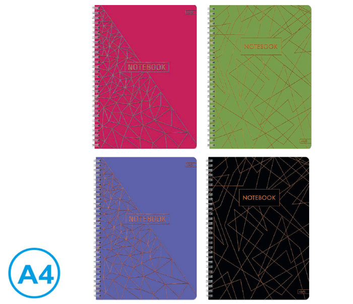 - vrchní desky potištěné a potažené laminem- zaoblené rohy- spirála na delší straně- mix motivů- formát: A4- počet listů: 100- vzor: linkovaný- gramáž: 70g/m²
