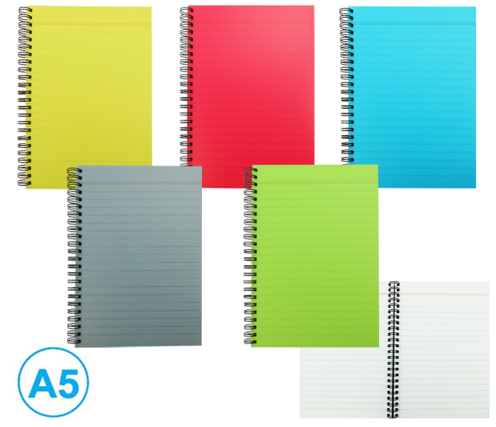 - barevné plastikové desky z polypropylénu- boční Twin Wire vazba pro snadné otáčení a odtržení listů- listy z bezdřevého papíru- formát: A5- počet listů: 80- vzor: linkovaný 9mm- mix barev