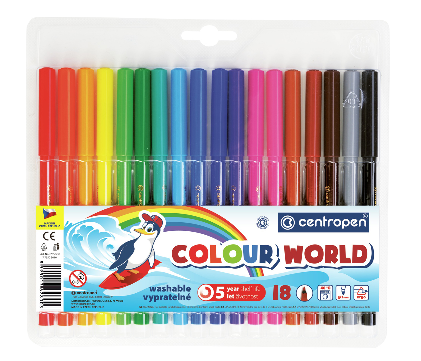 - sada popisovačů s ventilačním bezpečnostním chránítkem- ergonomický úchop pro lepší držení- zdravotně nezávadný, vypratelný inkoust- odolávají vyschnutí až 5 let - válcové hroty odolné proti zatlačení- syté a zářivé barvy - praktické balení s eurozávěsem- mix barev - šíře stopy: 1mm