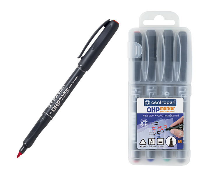 - sada speciálních permanentních popisovačů s ergo držením- určených pro psaní na neporézní povrchy jako jsou fólie pro zpětné projektory, film, kov, plast, pryž, sklo, porcelán- permanentní inkoust na alkoholové bázi, otěruvzdorný, vodou nesmývatelný- písmo lze odstranit lihem- ventilační chránítko- po použití uzavřít- barva červená, modrá, zelená, černá- šíře stopy 1mm- jemný hrot