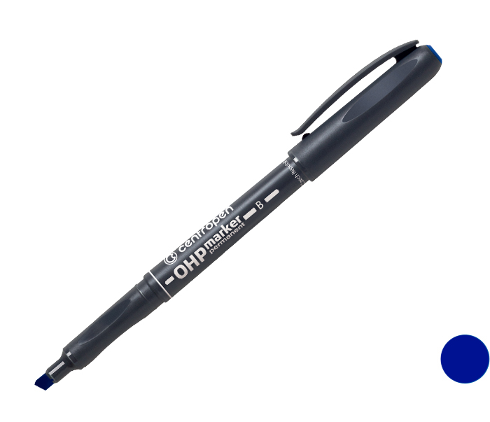 - speciální permanentní popisovač s ergo držením, určený pro psaní na neporézní povrchy jako jsou fólie pro zpětné projektory, film, kov, plast, pryž, sklo, porcelán- permanentní inkoust na alkoholové bázi, otěruvzdorný, vodou nesmývatelný- písmo lze odstranit lihem- ventilační chránítko, po použití uzavřít- barva modrá - šířka stopy 1 - 3mm- klínový hrot