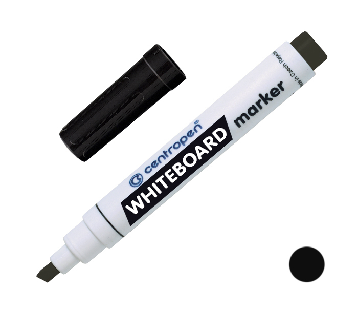 - značkovač na bílé smaltované tabule a na neporézní povrchy- zdravotně nezávadný- za sucha stíratelný- světlostálý inkoust na alkoholové bázi- vhodný i na dřevo, film, fólie, kov, papír, sklo, porcelán- skladovat ve vodorovné poloze, případně hrotem dolů- ventilační chránítko, po použití uzavřít- barva: černá- šířka stopy: 1 - 4,5mm- klínový hrot
