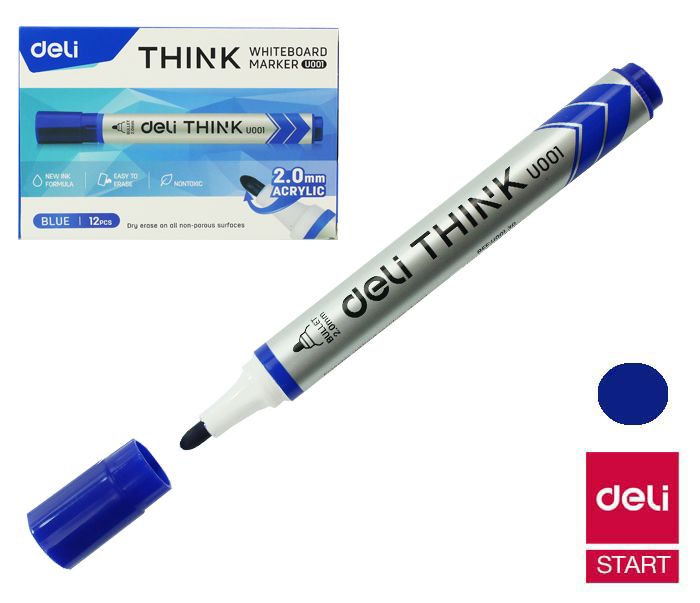 Popisovač DELI EU00130 modrý kulatý stíratelný (8559)