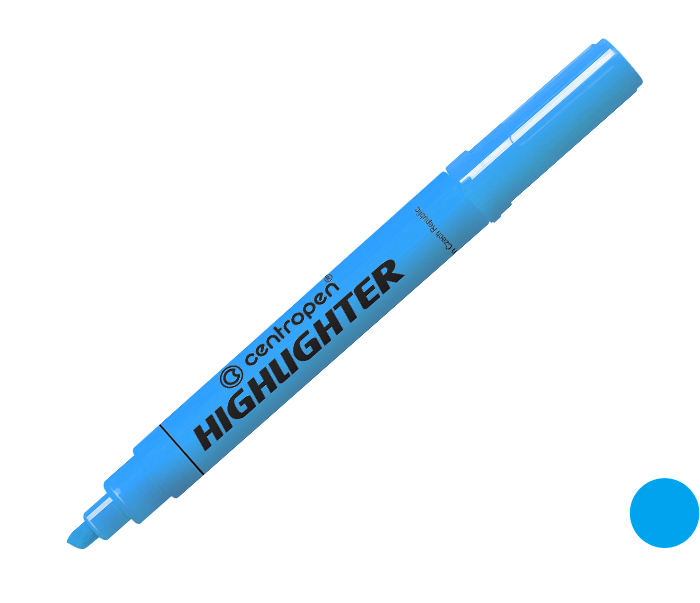 - velkokapacitní zvýrazňovač s reflexním, světlostálým pigmentovým inkoustem- určený pro zvýrazňování textů na všech druzích papíru včetně faxového a samokopírovacího- ventilační chránítko- barva modrá- šířka stopy 1 - 4,6mm- klínový hrot
