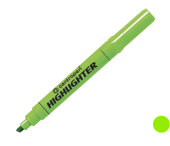 - velkokapacitní zvýrazňovač s reflexním, světlostálým pigmentovým inkoustem- určený pro zvýrazňování textů na všech druzích papíru včetně faxového a samokopírovacího- ventilační chránítko- barva zelená- šířka stopy 1 - 4,6mm- klínový hrot