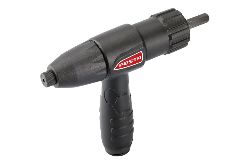 nýtovací nástavec na aku nebo elektrickou vrtačku optimální otáčky 600 za min., elektrický nabo aku stroj musí mít požadovaný kroutící moment - závisí na průměru a materiálu trhacího nýtu 3 čelisťové kleštiny z legovaná oceli Cr-Mo výměnné hlavice pro nýty o průměrech 2,4 - 3,2 - 4,0 - 4,8 mm nástavec nelze použít v rázových utahovácích ani v kombinaci s příklepem! konstrukce nástavce, přídavná rukojeť a materiál čelistí umožňují efektivní a rychlou práci při nýtování s jakýmkoli materiálem nýtů - nerezová ocel, ocel, meď nebo hliník upínání - šestihran 8 mm po každém utržení nýtu, použijte zpětný chod stroje, pro vyjmutí utrženého trnu při nýtování je nutné dodržet správně zvolenou délku nýtu ve vztahu k síle nýtovaných materiálů - např. u nýtu s délkou 10 mm je rozsah tloušťky materiálu min. 5 - max. 6,5 mm!