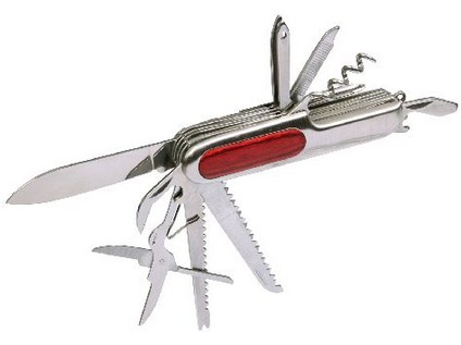 Nerezový multifunkční nůž s 11 různými částmi pro různé způsoby použití.