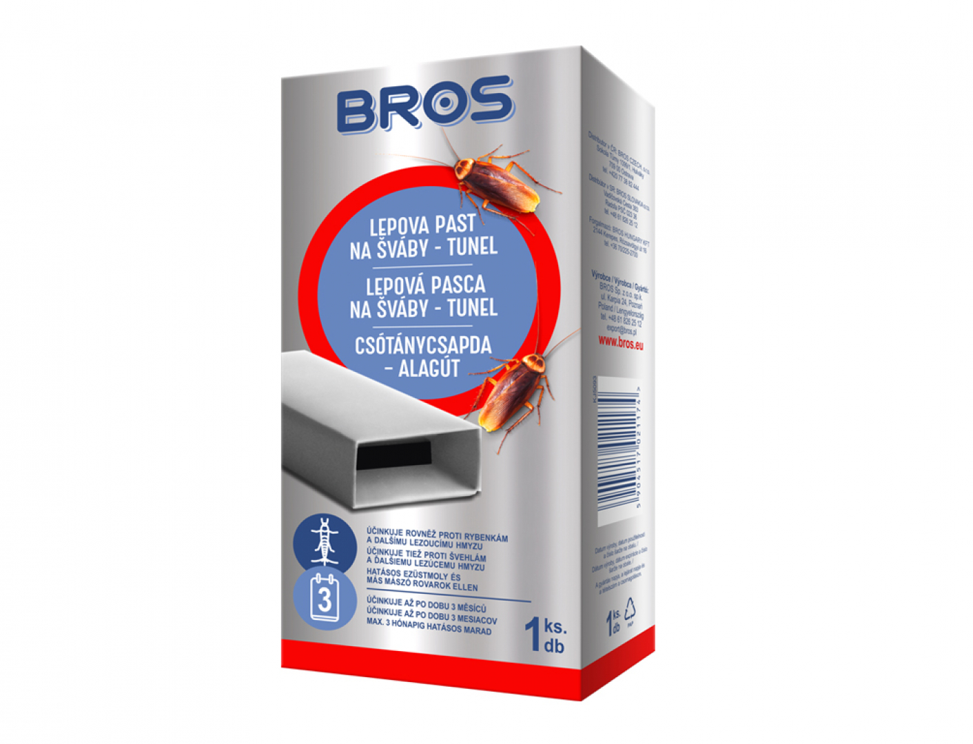 Likvidátor nežádoucího hmyzu ve formě lepové pasti, která chytá lezoucí hmyz jako švábi, rusi domácí a rybenky. Výhodou je, že zachycený hmyz není vidět a zároveň past neobsahuje žádné insekticidy. Díky vlastnostem lepidla je past použitelná po dobu až 3 měsíců, přičemž odolává vlhkosti a dalším vnějším vlivům. Balení obsahuje 1ks lepové pasti.