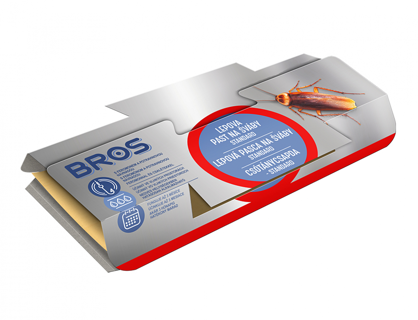 Lep na šváby s účinností 4 měsíce. Nevysychá. Neobsahuje chemikálie. Může se používat v nemocnicích. Aplikuje se v místech nejčastějšího výskytu hmyzu.