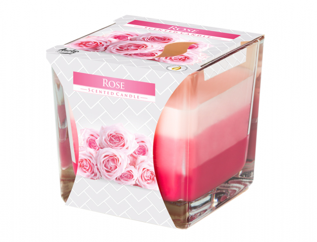 Svíčka v hranaté silnostěnné skleničce se 3 odstíny barvy s vůní růže. Hmotnost: 170 g.