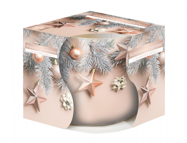 Vonná svíčka ve skle s atraktivním potiskem. Vůně: Vánoce. Doba hoření: 20 hodin. Hmotnost náplně: 100 g. Výška: 7,2 cm, šířka: 7,9 cm.