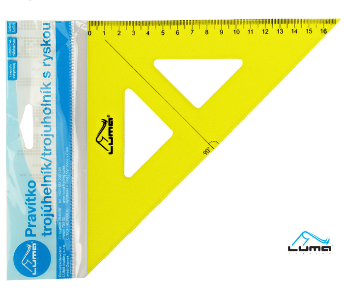 - PVC materiál- vhodné pro školáky, kanceláře i do domácnosti- délka 16cm- úhel 90° s ryskou- voděodolný potisk- ryska není tištěna (nesmaže se)