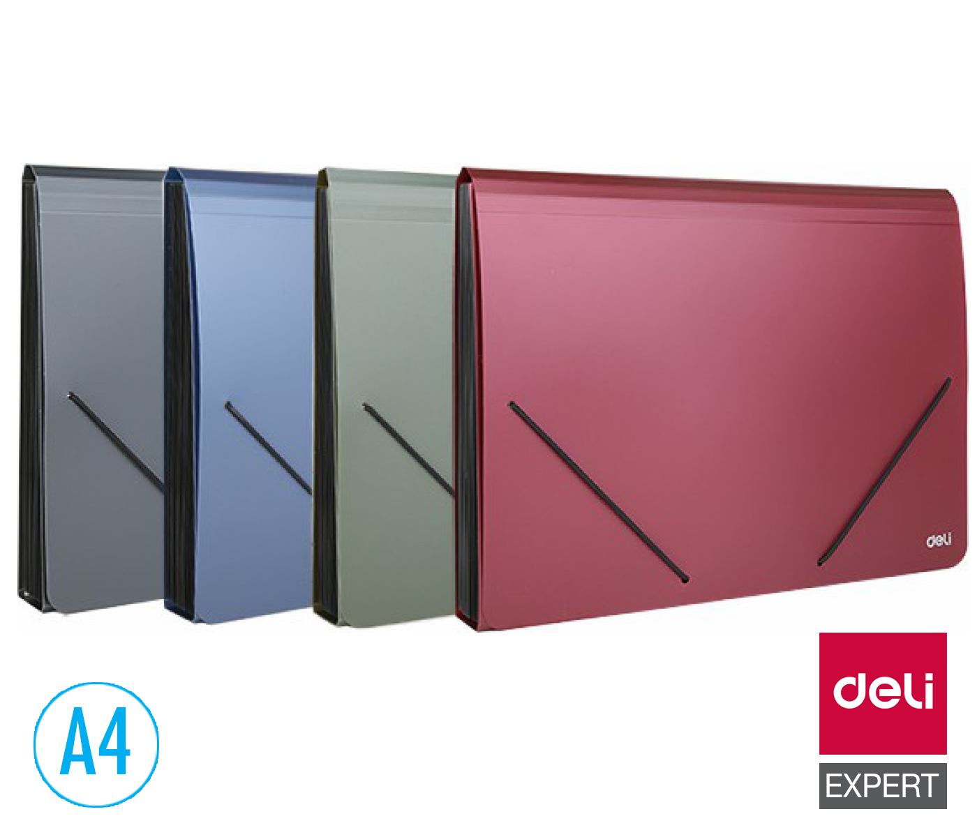 - vyrobený z barevného, odolného PP materiálu- složka má 13 přihrádek s registrem- 12 indexových karet na rozlišení registrů- voděodolná - pružný uzávěr- pouzdro na kartičky s popisem- formát A4- tloušťka 0,75 mm- mix barev