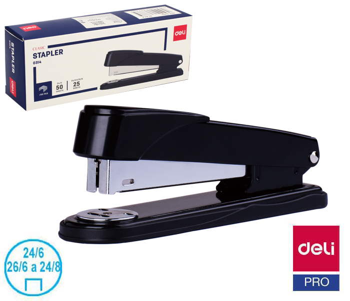 - drátky č.24/6, 26/6 a 24/8- sešití max 50 listů- 150 ks drátků- otočná kovadlina- ukazatel množství drátků v sešívačce- hloubka vkládání papíru 85 mm- možnosti sešívání: otevřené, uzavřené, nastěnkové (takrování)- záruka 5 let- rozměr 163 x 60 x 43 mm