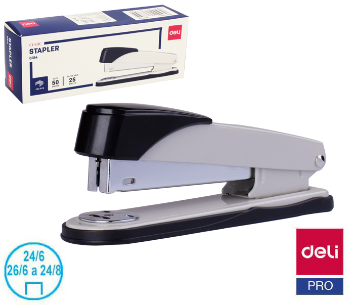 - drátky č.24/6, 26/6 a 24/8- sešití max 50 listů- 150 ks drátků- otočná kovadlina- ukazatel množství drátků v sešívačce- hloubka vkládání papíru 85 mm- možnosti sešívání: otevřené, uzavřené, nastěnkové (takrování)- záruka 5 let- rozměr 163 x 60 x 43 mm