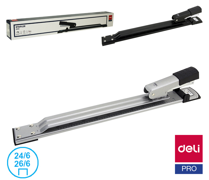 - drátky č.24/6, 26/6- sešití - 25 listů- 100 ks drátků- hloubka vkládání papíru 310 mm- ukazatel množství drátků v sešívačce- kovové rameno- otočná kovadlina- možnosti sešívání: otevřené, uzavřené- posuvné rameno s měřidlem- záruka 5 let - rozměr 400 x 118 x 9 mm