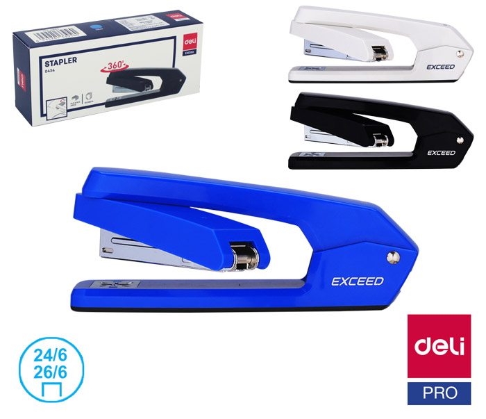 - drátky č.24/6, 26/6- sešití max 25 listů- 50 ks drátků- otočné sešívání ve 3 směrech- plastové tělo- kovové otočné rameno 360°- otočná kovadlina- pohodlné sešití sešitů uprostřed hřbetu- ukazatel množství drátků v sešívačce- mix barev
