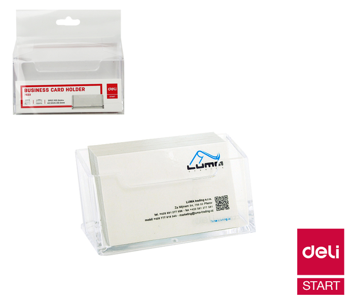 - GPPS čirý materiál- na vizitky tištěné vodorovně- vnitřní šířka 95mm- hloubka stojánku 40mm