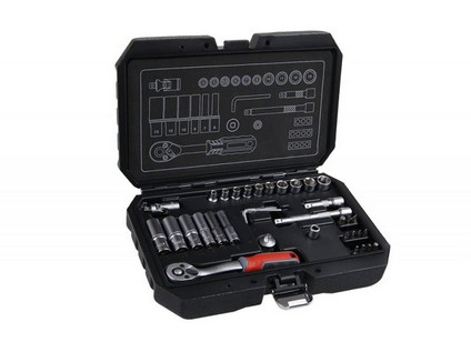 Gola sada 1/4"materiály: z vysoce kvalitní chrom-vanadiové oceli, niklová povrchová úprava, hroty bitů ze slitiny oceli S2, ráčny mají jemné dělení 72 zubů, tělo ráčny z CrV oceli, zubový mechanismus z S2 oceli, ergonomicky tvarovanou rukojeť se zdravotně nezávadnou gumou