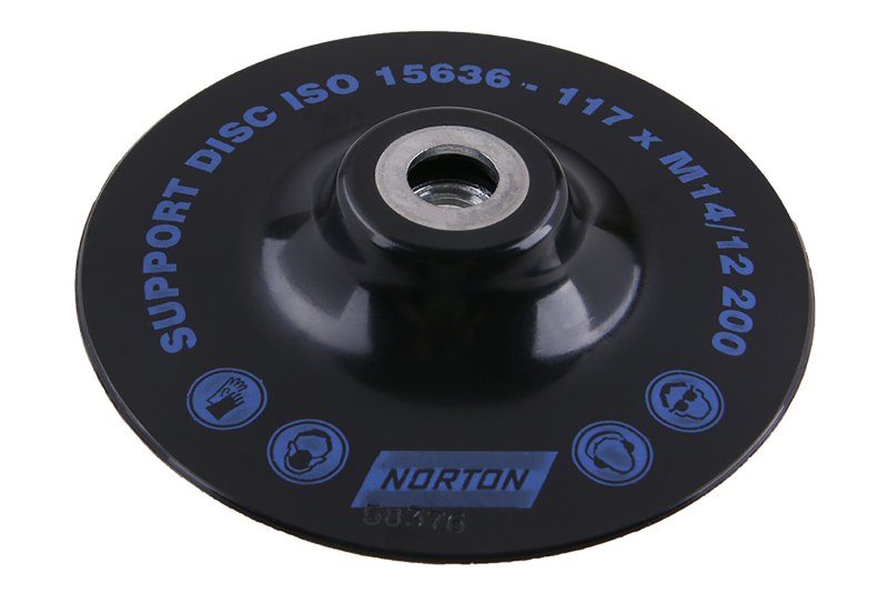 Unašeč fíbrového kotouče, pružná plastová nosná deska, M14, použití : pro uchycení fíbrových kotoučů o průměru 125 mm, druh uchycení : přes šroub. Instruktážní video