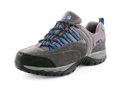 Polobotka, kombinovaná, vycházková. Materiál: svršek z hovězí semišové kůže kombinovaný s textilní síťovinou, podšívka z prodyšného textilního materiálu, phylonová podešev.