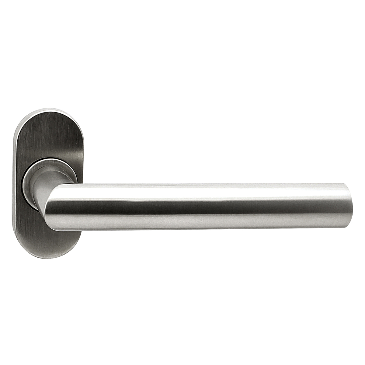 Nerezové klika (pravá) na oválné rozetě s vratnou pružinou kliky