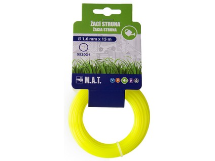 délka: 15 m profil kruh: 1,6 mm materiál nylon barva: žlutá Univerzální náhradní struna do do všech druhů vyžínačů.