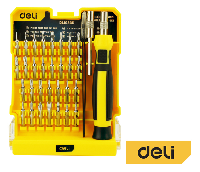 - 33 ks sada v praktické krabičces možností zavěšení- pogumovaný úchop šroubováku- materiál: Cr-V ocel- rozměr bity: 4 x 28 mm- rozměr krabičky: 111 x 114 x 30mm- hmotnost: 240gObsah sady:- rukojeť 95 mm- pinzeta 115 mm- prodlužovací nástavec H4 x 60mm- křížové bity PH000, PH00, PH0, PH1, PH2- ploché 0.8, 1.0, 1.5, 2.0, 3.0- hvězda 0.8, 1.2- TORX T2, T3, T4, T5- TORX s otvorem T6H, T8H, T9H, T10H, T15H- šestihran H1.5, H2.0- trojcípý Y0.8, Y1.5, Y2.0, Y3.0, Y4.0- U2.6- trojhran 2.3