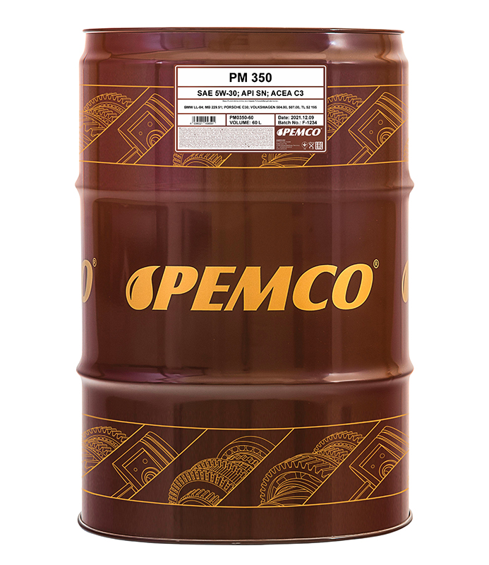PEMCO 350 je syntetický Mid SAPS motorový olej na bázi PAO + estery pro moderní benzínové a naftové motory s přeplňováním i bez přeplňování, včetně PD (Pumpe-Duse). Olej je navržen na základě požadavků VW a DAIMLER. Díky obsaženým esterovým složkám má vynikající vlastnosti proti tření a opotřebení, což zajišťuje dlouhý a bezproblémový provoz. Kompatibilní se všemi systémy následné úpravy výfukových plynů, DPF, TWC, EGR a SCR. Vhodné pro motory využívající CNG a LPG.