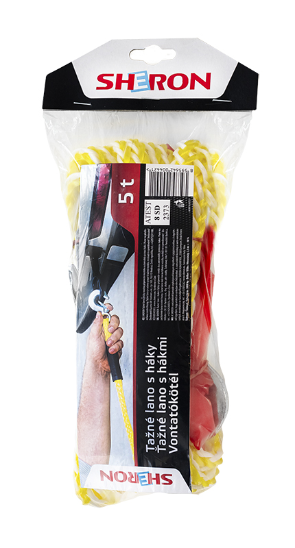 SHERON Tažné lano s háky pro snadnou manipulaci a připevnění mezi dva automobily pomocí nerezových háků. Součástí balení je červený praporek.