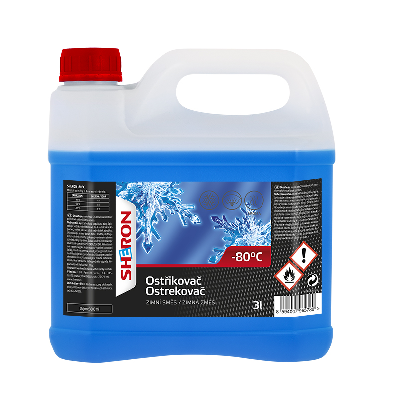 Nemrznoucí zimní směs do ostřikovačů s příjemnou citrusovou vůní. -80 °C zámrznost výhradně k ředění, nevhodná k přímému použití (vysoký obsah lihu může škodit gumovému obložení a gumičkám stěračů).