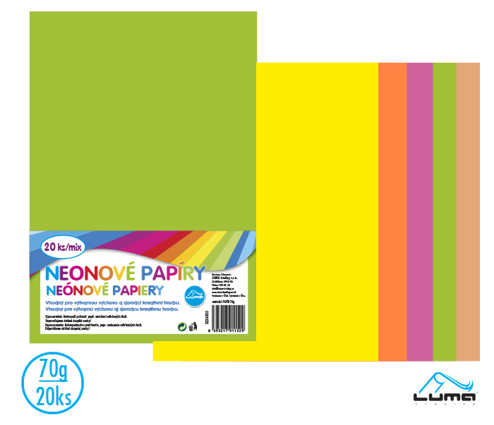 - vhodné pro stříhání, lepení a skládání- v balení: 20ks- formát: A4- gramáž: 70g/m²- 4x5 neonových barev