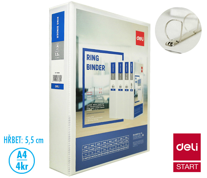 - PP materiál- D kroužek 40mm- hřbet: 55mm- zakládací kapsa uvnitř- vnější strany opatřeny folií na vkládání listů- kapacita: 300 listů
