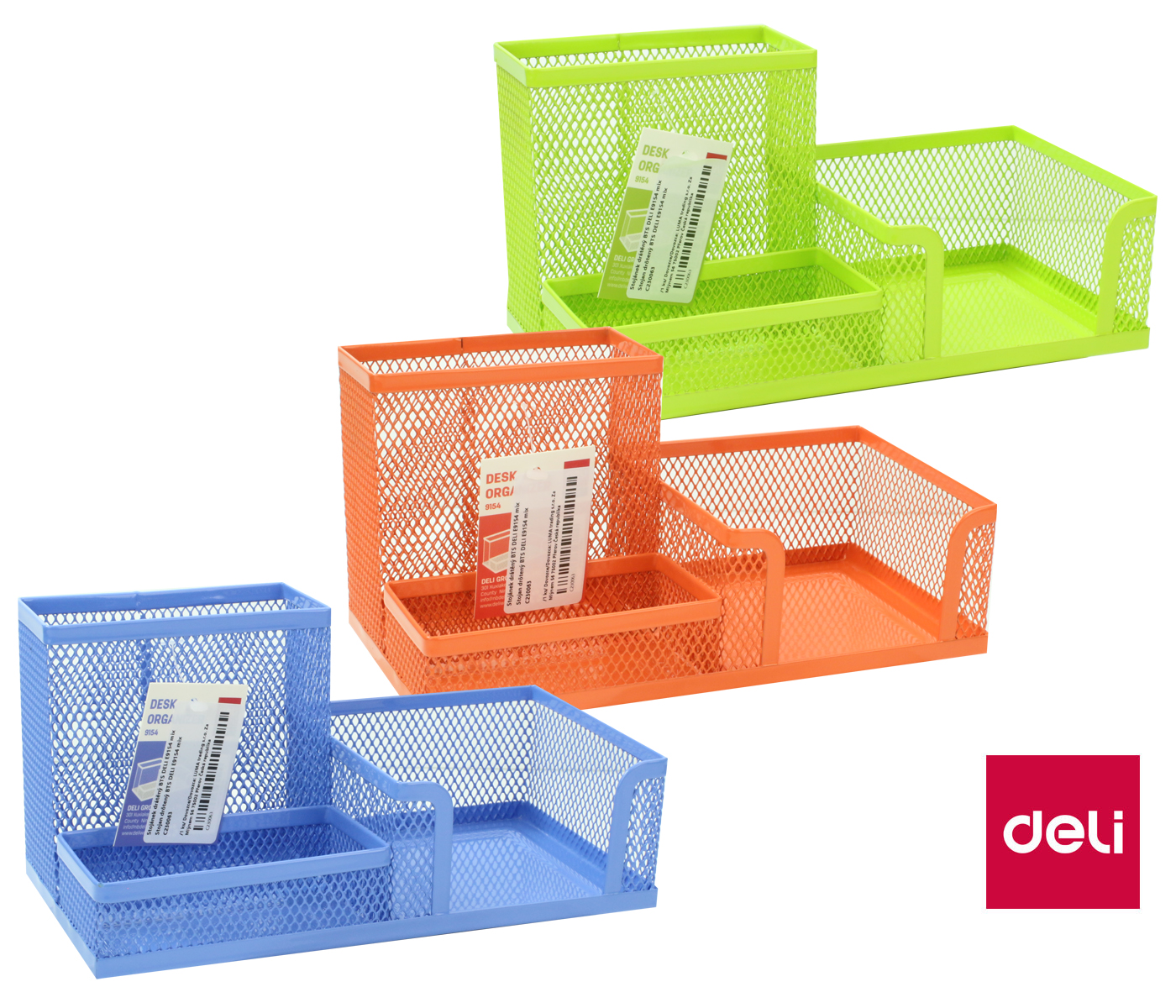 - univerzální kancelářský stojánek pro uložení psacích potřeb, nůžek, sponek a bločků- vhodný do kanceláří jako elegantní doplněk na stůl- mix barev- rozměr 200 x 100 x 100mm