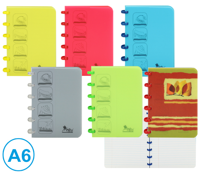 - barevné plastikové desky z poypropylenu- praktická kolečková vazba s možností výměny nebo doplnění listů- listy z bezdřevého papíru- formát: A6- počet listů: 60- vzor: linkovaný 8mm- gramáž: 90g/m²