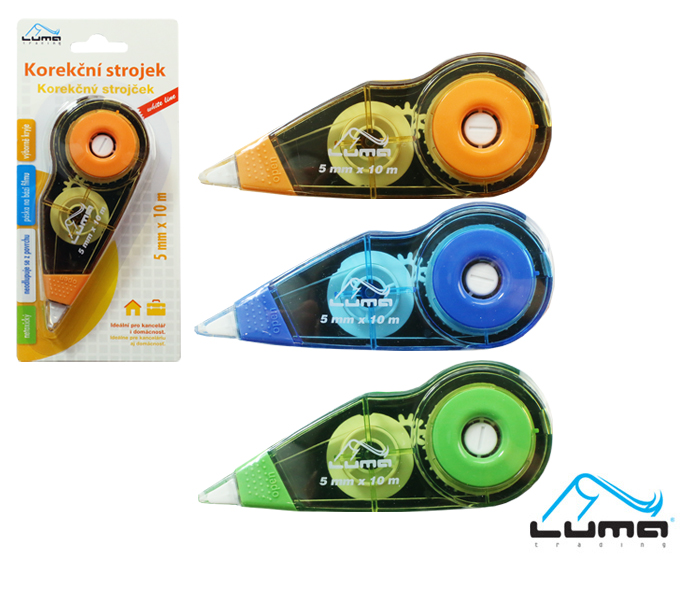 - návin 10 m- šíře stopy 5 mm- vhodný pro všechny druhy korektur- PVC tělo mix barev- k okamžitému přepsání- jednorázový- suchý film, neloupe se