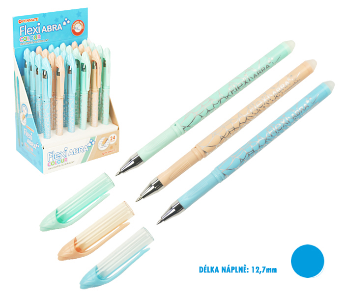 - gumovací propiska s unikátním inkoustem- text zneviditelníte zahřátím na 65 °C, které vznikne třením („gumováním“) plastového zakončení na papíře- znovu se objeví při teplotě nižší než -15 °C- vyměnitelná náplň (vhodná náplň A110048)- nepoužívejte na oficiální dokumenty.- barva inkoustu: modrá- šířka stopy: 0,5 mm