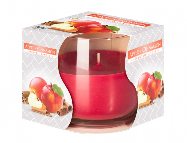 Vonná svíčka ve skle s atraktivním potiskem s vůní jablka a skořice k navození vánoční pohody. Doba hoření: 24 hodin. Hmotnost náplně: 100 g. Šířka: 7,9 cm, výška: 7,2 cm.