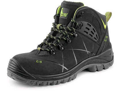 Pracovní kotníková obuv, kožená, s reflexními doplňky. Materiál: svršek z 1,6 - 1,8 mm štípenkové nubukové kůže (z jednoho dílu), vnější TPU ochrana paty, bez kovových součástí, podšívka z prodyšné oděru odolné textilie, PU-PU olejivzdorná, antistati
