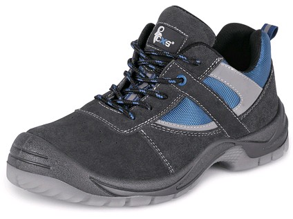 Bezpečnostní polobotka, perforovaná, s ocelovou špicí. Materiál: svršek z 1,4 - 1,6 mm kvalitní broušené kůže kombinovaný s prodyšnou tkaninou Cambridge, PU reflexní doplňky, prodyšná oděru odolná mesh podšívka, podešev: PU-TPU, protiskluzová, antist