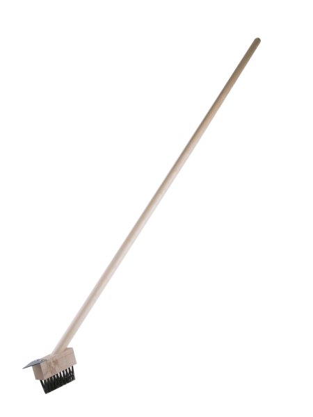 Kartáč na čištění zámkové dlažby s rukojetí. Kartáč na zámkovou dlažbu je velmi účinný při odstraňování mechu a plevele na menších plochách. Kartáč ze smrkového dřeva je osazený kvalitním ocelovým drátem. Délka násady 140 cm.